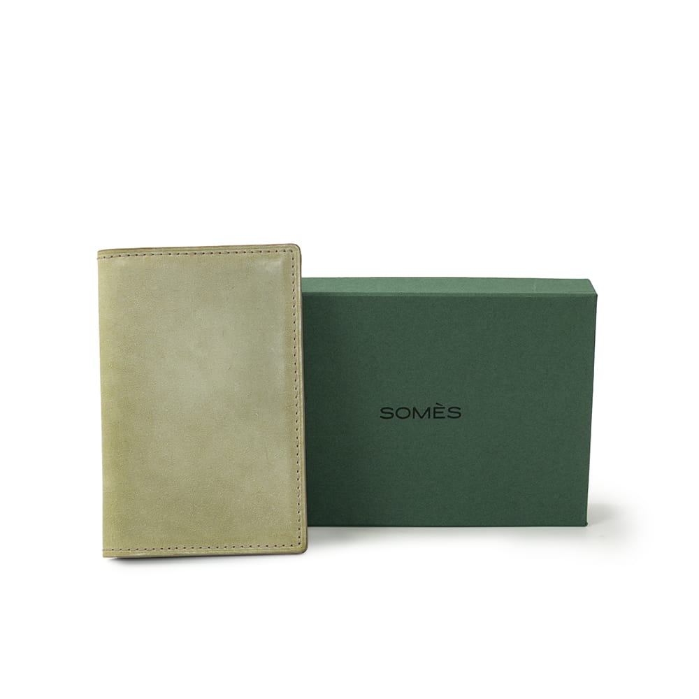 ワックス越しに霞むグリーンは、使い込むほどに深みを増し、抹茶のような落ち着いた色合いへと移ろいます。