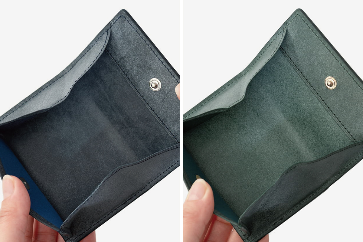 ボックスタイプのコインポケットは、中身をひと目で確認できる設計。大きく開くため、小銭の出し入れもスムーズに行えます。