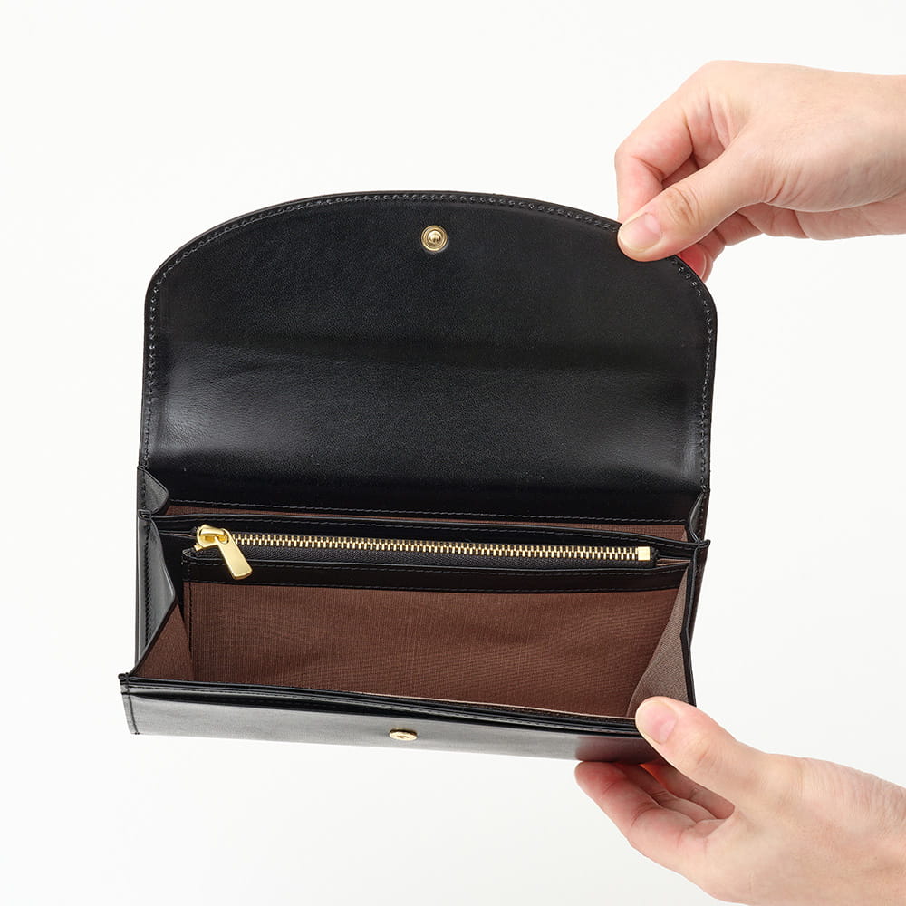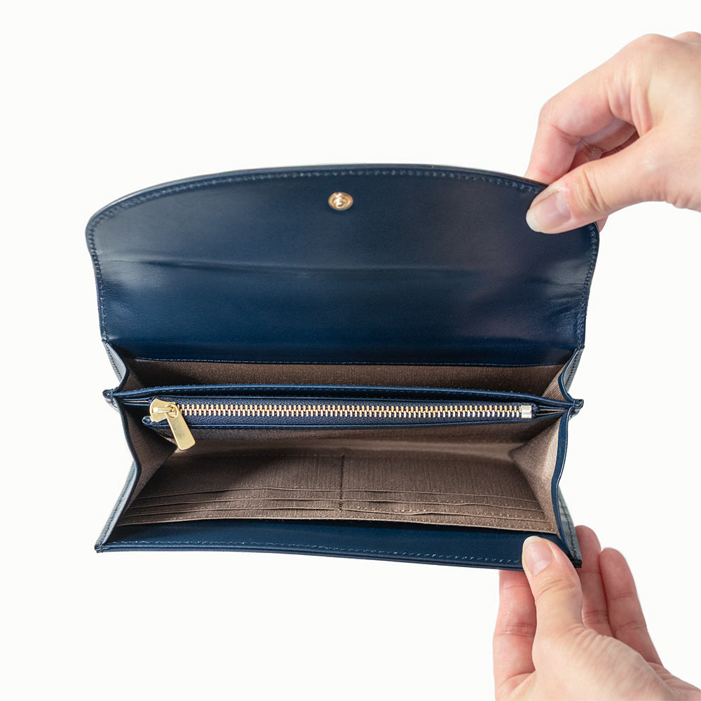 内装はウォレット機能と収納スペースに分かれた二層構造です。